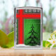 Christmas Winter tree with a two tone red cross decorative border and black silhouette tattoo style tree.