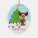 A delightful custom designed Christmas scene with a charming Moose decorating his tree.