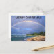 Merry Chritmas post card/rainbow over a beach Holiday Postcard