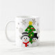 Personalize this darling snowman and Christmas tree coffee mug with your name and holiday greeting. This mug also features silver snowflakes.