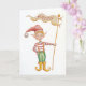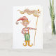 Send merry holiday greetings with this festive elf! Greeting card features a hand drawn original illustration of a cheery Christmas elf in full red and green costume waving a flag that reads "merry." Blank on the inside.
