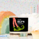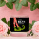 Striped elf legs with green boots accent this scented candle with the words "Merry Elf'n Christmas" in chic lettering on black. MATCHING items in our collection.