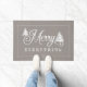 Merry Everything Grey Pine Trees Family Monogram Doormat