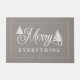Celebrate the holiday season with your own custom "merry everything" family monogram doormat. The design features a grey background with "merry everything" displayed in an elegant festive text paring with two white pine trees incorporated into the festive holiday design. the simple diamond-edged border frames the design with a custom family monogram.