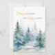Watercolor winter trees in shades of green paired with script and modern typography holiday card.