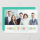 Merry everything christmas customizable company photo card in colorful and contemporary red, yellow, blue, green and white. Add your photo and custom text to this card to create a unique christmas greeting this holiday season for employees and customers.