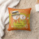 Merry Everything Snowmen Couple holiday pillow, so cute and colorful, features a polka dotted orange and mustard background with a circle polka dots on mustard and orange, and a snowman and snow lady with big carrot noses and tall black top hat, winter scarves, and a winter stocking cap with a mustard heart that reads Snowmen Melt My Heart! We have the matching throw blanket, tree skirt, binder, greeting cards, ornaments, and more!