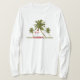 Cute snowman with a drink, under palm trees, featured on this fun Florida Christmas shirt.