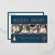 Merry Happy Chrismukkah 4 Photo Blue And Rose Gold Foil Holiday Postcard