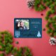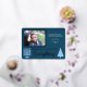 Add a touch of luxury to your holiday greetings with these real rose gold foil flat greeting cards featuring your photo and a pastel blue Christmas tree and a matching Hanukkah Menorah. Add your photo to the upper left of the design where it will appear with rounded corners and a double border of rose gold foil. MERRY HAPPY EVERYTHING, also in rose gold foil, is balanced by the pale blue text to the right of your photo where you can add a Christmas or Hanukkah greeting along with your name and year. These personalized holiday greeting cards reverse to a solid pastel blue with a thin dark blue border and space to add an additional greeting if you so choose. Designed as an option for interfaith Jewish and Christian couples and families who celebrate "Chrismukkah", these MERRY HAPPY EVERYTHING greeting cards with light blue menorahs and trees are also perfect for Christmas or Hanukkah wishes for those who prefer a more all inclusive design.