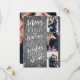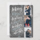 This modern and chic holiday photo card doubles as a save the date card for the newly engaged couple. The front features 3 of your photos accented by hand drawn snowflakes and hand lettered typography that says "Merry Kisses and Warm Holiday Wishes From The Soon To Be Mr. and Mrs." on a chalkboard background. The back features a full photo with your save the date details.