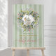 Welcome guests in style with this personalized foam board sign, featuring a festive holiday greenery wreath, carousel ornament, and soft sage green stripes. Printed on durable, lightweight foam board, this sign is perfect for displaying on an easel at the entrance, gift table, or dessert station. Available in multiple sizes, it’s an elegant and practical way to set the tone for your cozy winter baby shower.