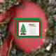 Kids Christmas themed merry little birthday invitations. Invite features red and green holiday theme with gray snowflakes, Christmas tree and presents