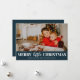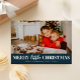 Merry Little Christmas Blue Modern Script Photo Holiday Card