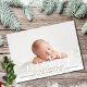 An elegant photo holiday birth announcement card featuring your special favourite photo, baby's name and birth stats, and your holiday message set in classic modern typography. Designed by Thisisnotme©