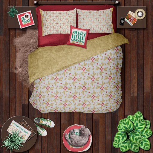 Merry Little Christmas Red & Gold Holly Watercolor Holiday Card