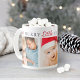 A sweet Christmas photo mug featuring "Merry Little Christmas" in elegant mixed typography with red snowflake accents and a multi-photo collage wrapping around the surface. The clean, minimal design on a white background lets the photos shine. All photos are fully customizable — perfect for showcasing a new baby's first holiday season, family portraits, or kids' Christmas photos. A charming keepsake gift for new parents, grandparents, or anyone celebrating a little one's first Christmas.