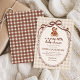 Celebrate the mom to be with this Merry Little Teddy Bear Winter Christmas Baby Shower Invitation. Featuring a sweet watercolor teddy bear in a Santa hat, soft neutral brown gingham background, and festive hand drawn bow accents, this cozy and whimsical holiday design is perfect for a winter or Christmas themed baby shower. This editable template makes it simple to personalize and share your joyful seasonal celebration.