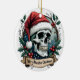 Celebrate a Christmas with a twist of dark humor! This unique ornament features a grinning skull in a Santa hat, surrounded by holly and snowflakes, with the words "Merry Macabre Christmas." Ideal for those who love to combine the festive spirit with a gothic edge, making it a standout addition to any unconventional holiday decor.