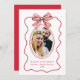 Merry Married Red Wavy Frame Bow Photo Christmas Holiday Card