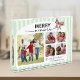 This horizontal photo block features a joyful and heartwarming collage of family photos framed within a soft, light green striped border. At the top, the phrase “MERRY memories” is prominently displayed, blending a bold, festive font with elegant script. A red and green ribbon bow adds a cheerful holiday touch in the upper right corner. The acrylic block offers space for five family photos, one larger and 4 smaller square photos. The design beautifully conveys warmth, connection, and celebration, making it a lovely holiday gift.