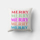 This cheerful holiday throw pillow features the words, "MERRY MERRY MERRY MERRY MERRY" in colorful letters on the front and the back. This pillow is so colorful and will add positive energy to your holiday space. Copyright Kathy Henis