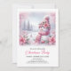 Celebrate the joy of the season with this adorable Christmas invitation for kids, designed with a cute watercolor pink coquette snowman in a snowy forest. The playful pastel tones and whimsical snowy background make this invitation a delightful choice for holiday parties, classroom celebrations, or festive family gatherings.
