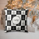 Merry Quote Black & White Squares Christmas Trees Throw Pillow