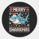 Merry Sharkmas Shark Christmas Ugly Xmas Lights Classic Round Sticker