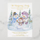 Luxury Foil Christmas card from your new home. The wording reads "the ... family have a new home for the holidays" followed by your personalized christmas greeting and new address. This watercolor design features 3 cute snowmen with a backdrop of christmas trees.