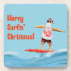 Merry Surfin' Christmas Santa on Surfboard Beverage Coaster