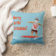 Merry Surfin' Christmas Santa on Surfboard Throw Pillow