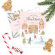 Wish your family and friends a Merry & Sweet Christmas with our fun and festive holiday gingerbread postcard. Our design features our own hand-painted watercolor fun gingerbread town scenery and landscape. Every little detail is captured in this quaint little neighborhood scene. Features three gingerbread homes decked out in festive candy decorations, pink snow-covered trees, lamp posts, children skating and throwing snowballs, and singing, a red mailbox, and presents. Personalize with your family's signature. The reverse side features our pink van carrying a Christmas tree and festive pine-tree greenery. Customize with your personal message, name, and address. All illustrations are hand-painted original artwork by Moodthology Papery.