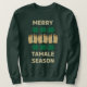 A funny Mexican pride happy tamale season Christmas dinner fun humor slogan Feliz Navidad holiday fiesta family gathering tamale time taco Tuesday merry Xmas ugly sweater style happy holidays seasons greetings fun yummy cartoon food design sweatshirt. Get a festive Christmas tamale sweatshirt today.
