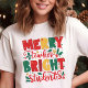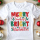 Celebrate the holidays in the classroom with this festive and fun "Merry Teacher Bright Students" design. Featuring colorful, bold lettering decorated with holly and snowflakes, this shirt captures the joyful spirit of both teachers and their students. Perfect for showing off your holiday cheer while spreading positivity in the classroom. This playful and vibrant Christmas-themed shirt makes an excellent gift for educators who want to celebrate the season with their bright students. Get into the Christmas spirit and make your classroom merry and bright!