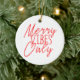 Lightweight, smooth, pure white ornament with nice sheen. Perfect size to be seen from across the room ... and to attract closer inspection! Price was great for ordering enough for the whole family! Clear, bold black design just as requested. Matches the order exactly. Just so nice!