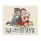 Vintage illustration of a boy and girl sledding in the snow, with vintage French letters from an alphabet book spelling out the word, "merry." Great idea for a kid's room.