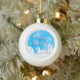 Merry Xmas Blue White House Snow Ceramic Ball Christmas Ornament