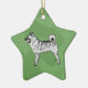 This Norwegian Elkhound sketch is on an ornament with a Christmas green background. You can add text or images to the back as well.