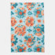 Mesmerizing Blue and Orange Floral Illustration Kitchen Towel