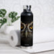 Add a touch of nature to your workouts and walks with this wildlife-inspired hydration bottle, which features the golden gaze of a Spectacled Owl, vignetted on a black background.