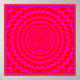 Optical Illusion: In this image waves of concentric spiky red and pink circles create the perception of pulsating motion and vibrations.