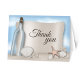 Personalized beach thank you cards, primed by Artistically Invited, for a beach themed wedding with sea shells, sandy, a starfish, and an illustrated clear bottle with a message, over a blue sky. Personalize the inside text in the thank you cards with your own custom text, or delete the template text to leave the inside of these cards blank for writing your own feelings of thanks hand. These are the perfect beach thank you cards for your beach themed weddings, showers, and celebrations.