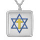 Christians and Jews united in faith in Almighty God and in support for the Jewish state of Israel. Messianic symbol with Christian Cross in yellow on blue Magen David from the Christian Faith Gift Shop.