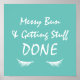 Cute and stylish motivational poster in white and teal featuring the phrase "messy bun and getting stuff done" in script.