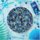 Mosaic of green and blue irregular triangles and hexagons, messy and overlaid. -The dark red color that divides the shapes can be changed, using the background color options on the website.