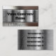 A metal surface in stainless steel grunge look chrome is a bold, unique and 3d look strong business card. Cut metal plate on the front of the card stands out nicely to show off your company name or your name. Easily customize with your own information. Use the perfect font style of bold black lettering with screws in the design, or easily change the font style. The perfect professional looking card especially for industrial, construction and building occupations. More information can be put on the back as well onto the same metal background. Printed on paper, not actual metal. A strong business card that stands out from the rest.