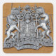 The Arms of Canada, also known as the Royal Coat of Arms of Canada as seen on the Canadian Embassy on the Caribbean island Curacao. Metal on brown orange background.