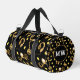 Metal detectorist duffel bag patterned with metal detecting tools. There's a monogram area at one end to add your own initials or text
