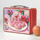 This is a standard metal lunchbox that appears to work just fine. We designed this box ourselves with an uploaded photo and custom text on the front and back. It looks absolutely beautiful except the front of the lunchbox is not centered like it shows in the photo. The print borders don't align with the inset flat part of the box where the preview photo online showed it perfectly centered in there. The back looks nice and centered though.